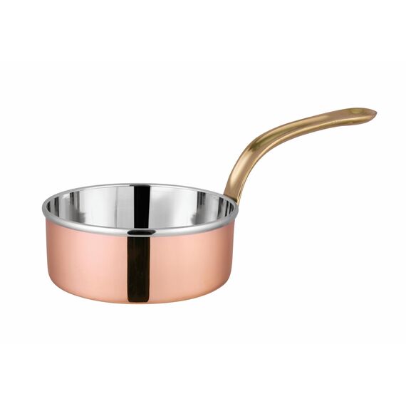 нерж сталь с покрытием медь, ручка - латунь, на 1 порцию, размер - 21.5*d11*h4,5см, длина ручки 11,5см