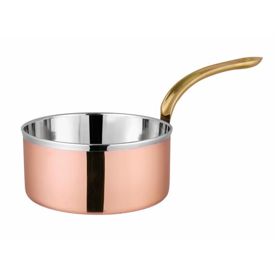 нерж сталь с покрытием медь, ручка - латунь, на 2 порции, размер - 24,1*d14,2*5,5см, длина ручки 11,5см