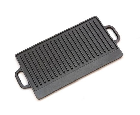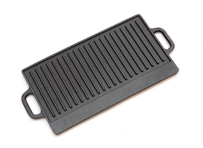 Чугунная планча эффективно распределяет и сохраняет тепло, обеспечивая равномерное приготовление. Двусторонняя конструкция: Благодаря этому вы можете использовать гладкую сторону для жареных сэндвичей, яиц и блинов, а ребристую сторону — для жарки рыбы, стейков, курицы и гамбургеров