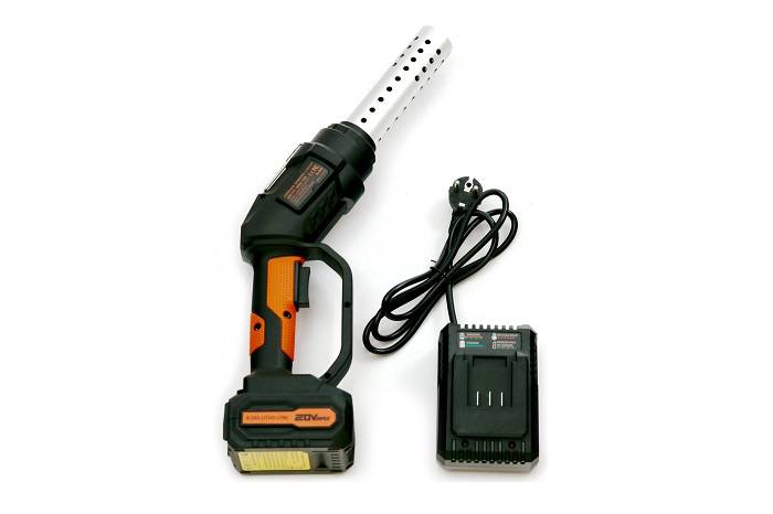 Стартер-фен для розжига углей, на аккумуляторной батареи. Имеет 2 режима работы: зажигание угля, раздувание пламени.