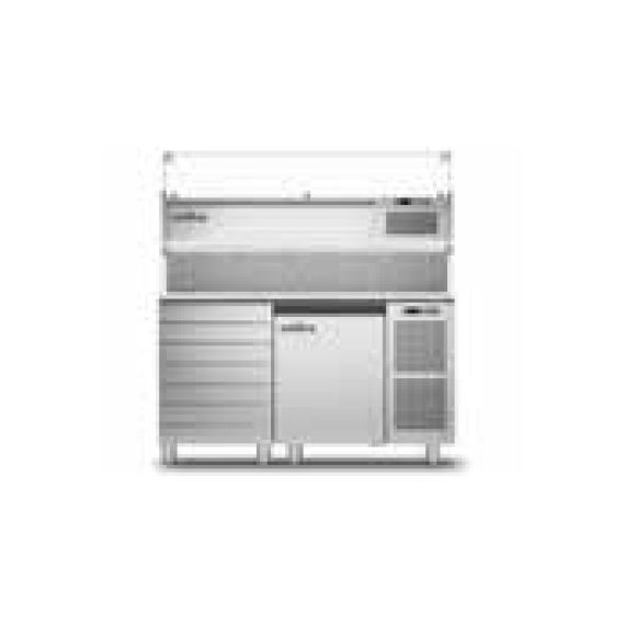 1450х800х1525 мм, 265 кг, 0,25 кВт, 220 В, от -2 до +8С, энергетический класс В, нерж сталь AISI 304, толщина изоляции 60 мм, с гранитной столешницей, 1 глухая дверь + комплект из 7 ящиков, R290, в комплекте: витрина-надстройка холодильная GN1/4, 4 пары направляющих EN600x400 мм, с агрегатом