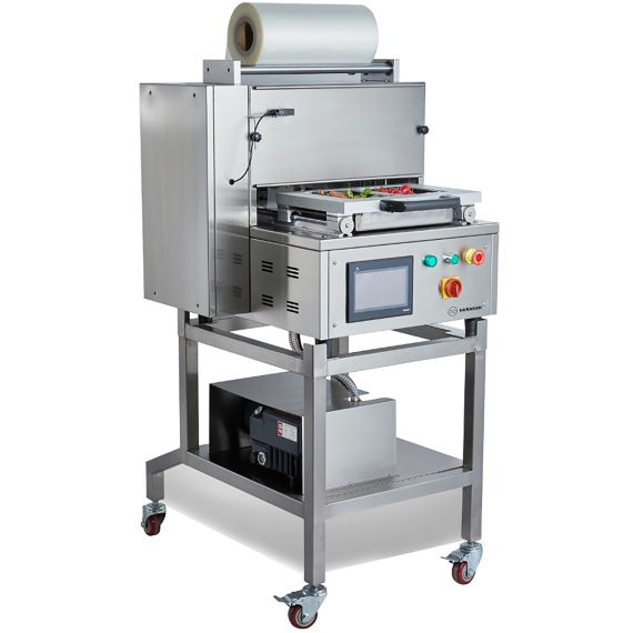 795х854х750мм, 220В, 2кВт, 125кг, 2-3 цикла/минута, диаметр рулона пленки до 220мм, ширина пленки до 390мм, программируемая панель управления с сенсорным экраном, сталь 304, вакуум/газ, 20м3/час