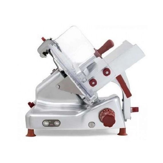 Диаметр ножа 370 мм, Передача ремень, ручной. Толщина нарезки 0-14 мм. Слайсер для профессионального использования на закрытых кухнях ресторанов. Детали из алюминия и нержавеющей стали, корпус из анодированного алюминия с пластиковыми деталями. Встроенное заточное устройство. Специальная конструкция для легкости очистки и точной нарезки. Нож с тефлоновым покрытием в комплекте