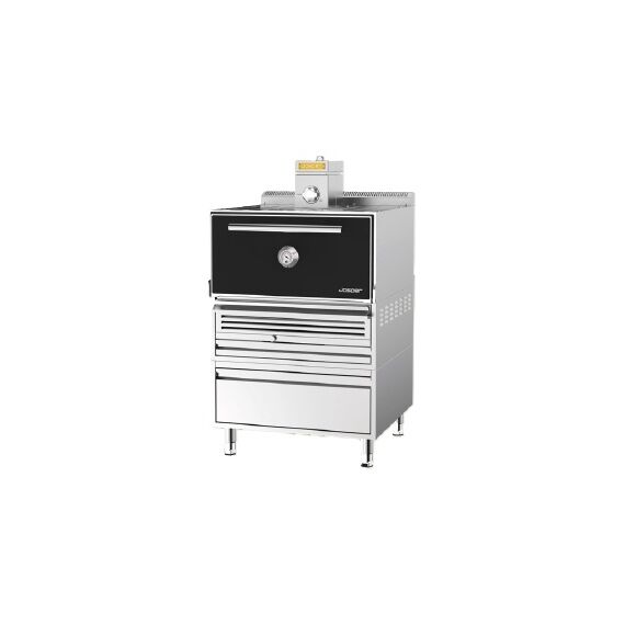 916х1011х1660мм, в комплекте: искрогаситель, диффузор, щипцы, проволочная щетка, одна решетка для гриля 760*760мм и кочерга для золы, стол-подставка с ящиком, производительность - до 110 кг/час, рекомендуется для заведений с количеством посадочных мест до 175, цвет двери черный