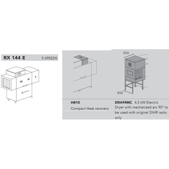 МАШИНА ПОСУДОМОЕЧНАЯ DIHR RX 144 E DX+DDE+HR10+DRA94MC/ДЕЛЕНИЕ 2 ЧАСТИ