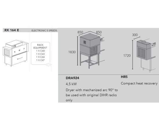 МАШИНА ПОСУДОМОЕЧНАЯ DIHR RX 164 E DX+DRA924+HR5+DDE / ДЕЛЕНИЕ 2 ЧАСТИ