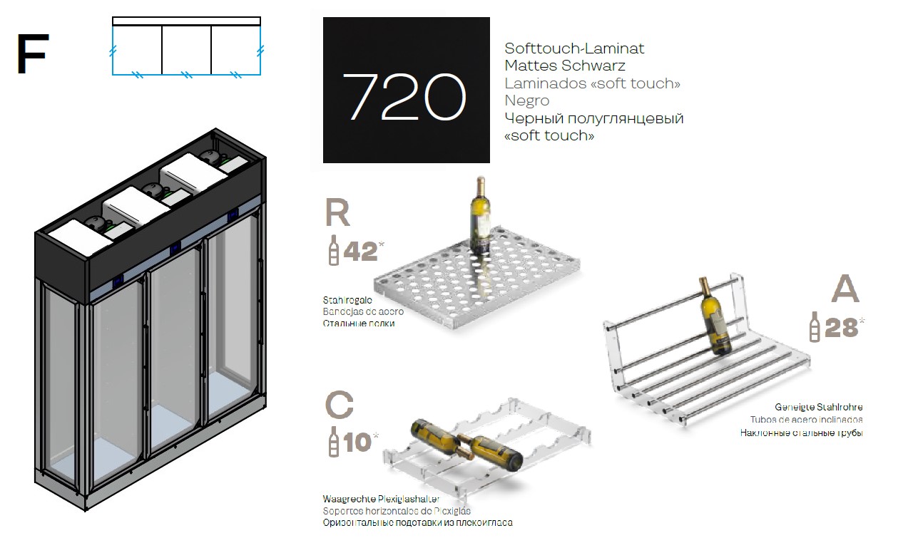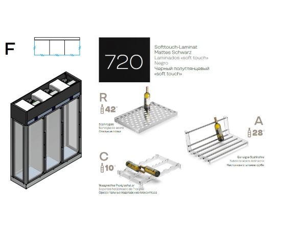 ШКАФ ВИННЫЙ ENOFRIGO WINE LIBRARY 20 3V DX-SX 3P H2600 VT ЧЕРНЫЙ+ПОЛКИ R+ПОЛКИ C+ПОЛКИ A
