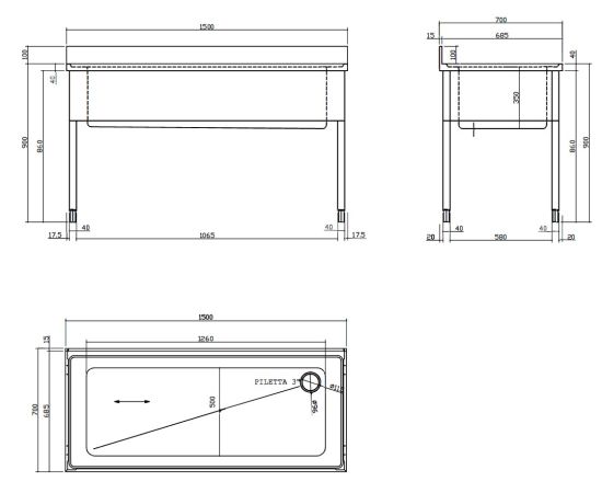 СТОЛ Д/ГРЯЗ.ПОСУДЫ DIHR СПЕЦ. 1500ММ КОТЛОМОЕЧНЫЙ