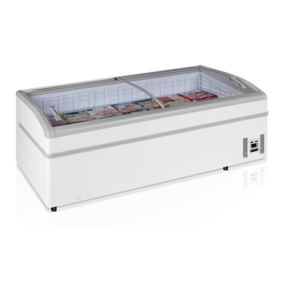 2020 x 920 x 790 мм, 220В, 0,442 кВт, От -24 до -18 / От -1 до +15 C , брутто/нетто - 800 / 560 л, 127 кг, с встр. агр., R290, 4 регулируемые ножки, 2 гнутые раздвижные крышки из закаленного стекла