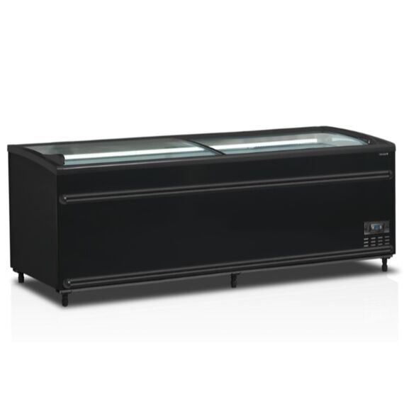 2106x858x890 мм, 220В, 0,89 кВт, От -24 до -18 / От -1 до +8 C , брутто/нетто - 908 / 584л, 164 кг, с встр. агр., R290, 6 регулируемых ножек, 2 гнутые раздвижные крышки из закаленного стекла. Цвет корпуса-черный