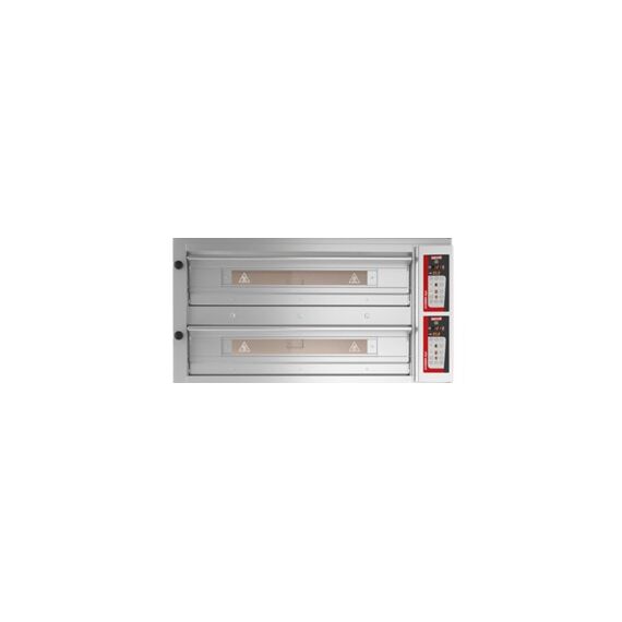 1420x1380x780мм, 380В, 11,2+11,2кВт, размер камеры 1050x1050x160мм, 2 камеры = по 9 пицц d=33см, электромеханическая панель управления