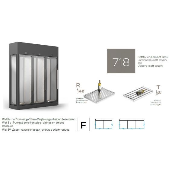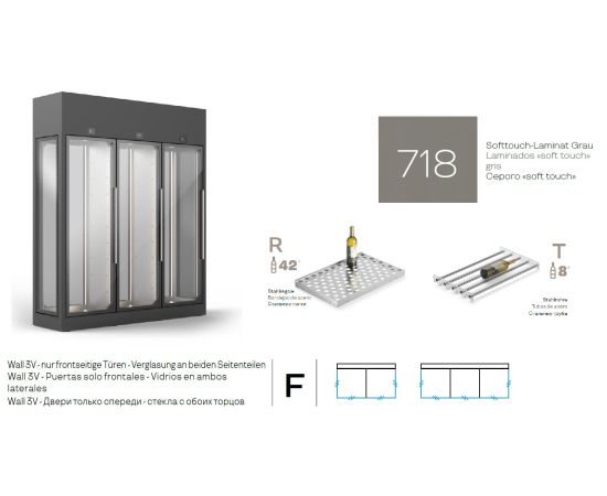 ШКАФ ВИННЫЙ ENOFRIGO WINE LIBRARY 20 3V DX-SX 3P H2600 VT F СЕРЫЙ+ПОЛКИ R+ПОЛКИ T