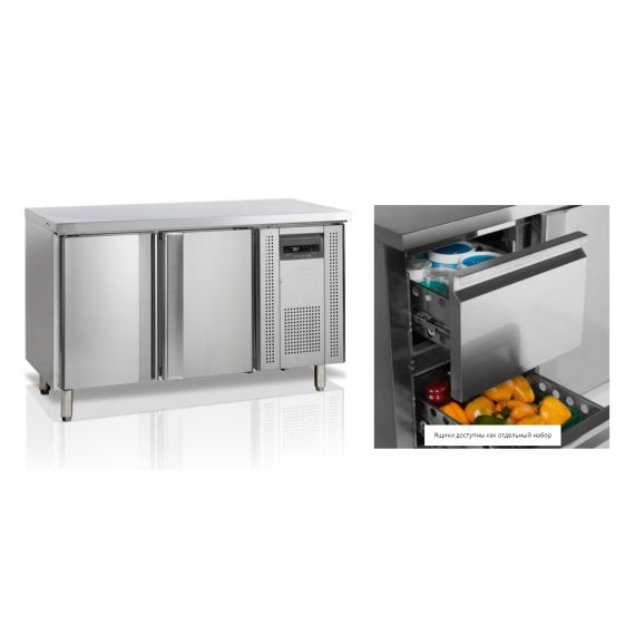 1360 x 600 x 880мм, 0,3кВт, 220В, -2...+10С, брутто/нетто - 240/230л, с встр.агр. R600a, 1 дверца одна секция с выдвижными ящиками (2 ящика), столешница без борта