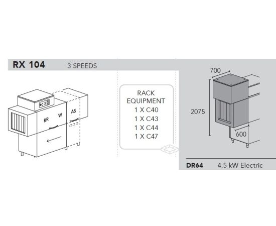 МАШИНА ПОСУДОМОЕЧНАЯ DIHR RX 104 DX+XP+DR64
