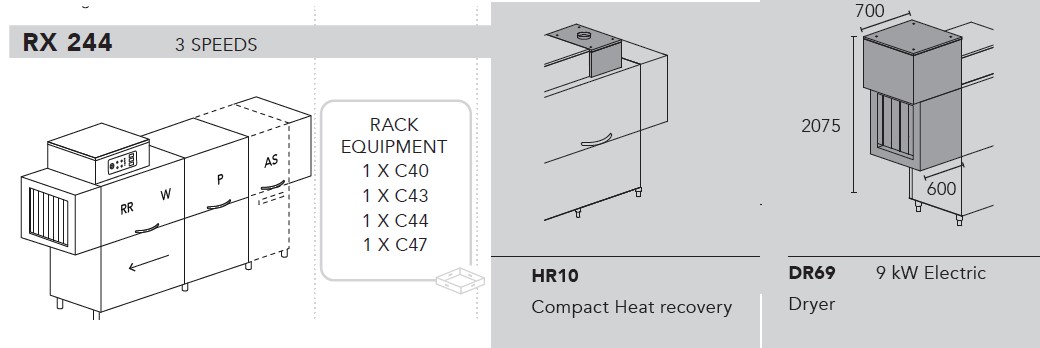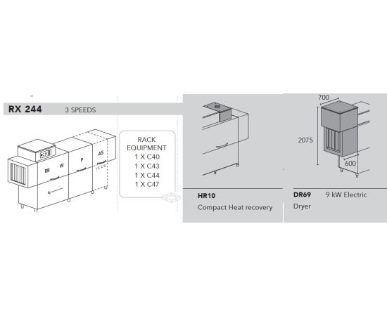 МАШИНА ПОСУДОМОЕЧНАЯ DIHR RX 244 DX+DDE+DR69+HR10/2 ЧАСТИ