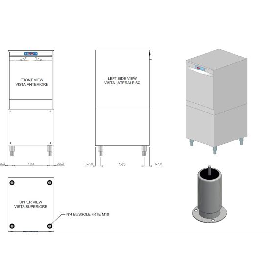 600*700*1380, спец. морская версия с подключением 230В/3Ф без нейтрали/50Гц, 10,12 кВт, размер кассет 500*610мм, для инвентаря, котлов (макс. высота 440 мм), подносов 600х400 мм, гастроёмкостей GN 1/1 глубиной 20 мм, 4 программы, DDE (DD) - дозатор моющих и ополас. средств, DP (PS) - помпа слива , PLUS - ополаскивание водой строго 85C и при постоянном давлении. Спец. ножки с возможностью крепления к полу