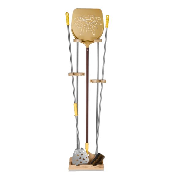 Универсальная 3хместная стойка с деревянной подставкой, h150см, нерж сталь, 4