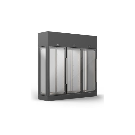 Код A1WF3BV5A/873 ALUMINIUM GREY +12PCS*M220430008, 2,5кВт, 220В, +4/+18 С, 580кг, 1371л, версия с встроенным хол. агрегатом, R290 фреон, цвет корпуса серый матовый (код 718). 3 двери со стеклом спереди, стеклянные боковые панели, глухая задняя стенка. Вместимость макс. до 630 бутылок (зависит от типа установленных полок). В данной комплектации: полки R х 12 шт, суммарная вместимость с этим типом полок до 500 бутылок Бордо