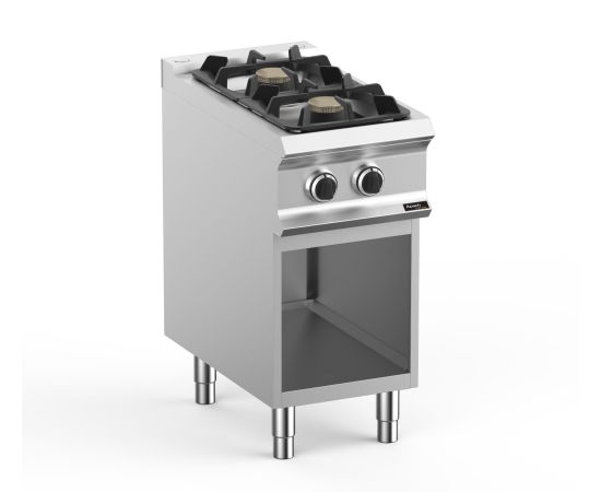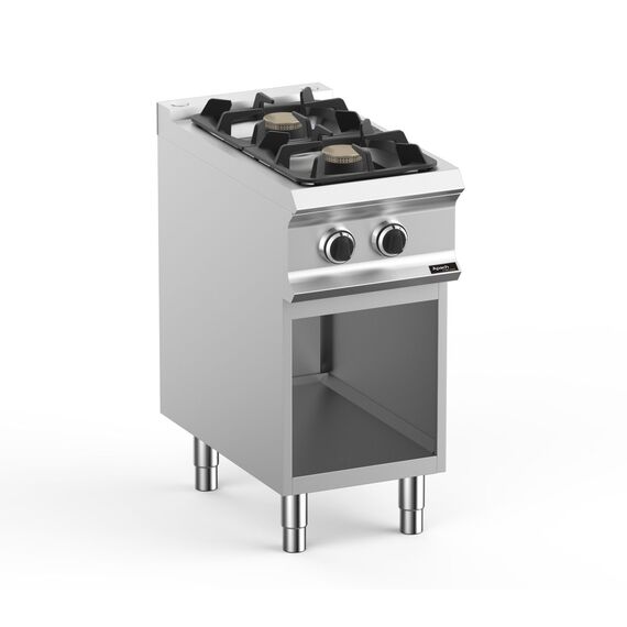 400х900х850 мм, 51 кг, газ 18 кВт, 2 конфорки 375х372 мм, на открытой подставке