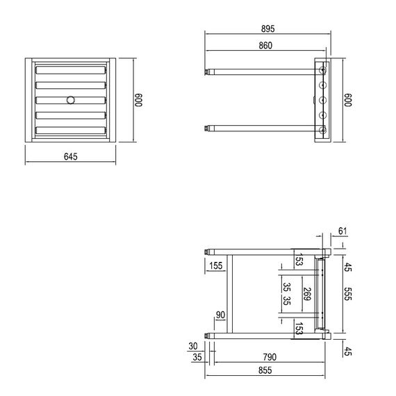 600х650х860 мм, для линейки VX, для RX - по запросу, спец. длина - 600мм, по заказу