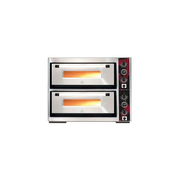 972х1263х765 мм, 400В, 15 кВт, 6+6 пиццы диам. 35 см, 2 камеры, размер камеры 700х1050х150 мм, толщина пода 17 мм, макс. температура 455С, термометр, подсветка