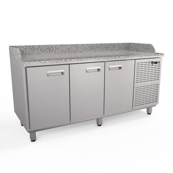 1775х700х850 мм, 700мм,-2…+7 C, гарнитная столешница, 3 двери, боковой агрегат, динамическое охлаждение, размер дверного проема 340х540,полки в комплекте, возможность установки гастроемкостей, компрессор Embraco, 220 В, 0,55 кВт.