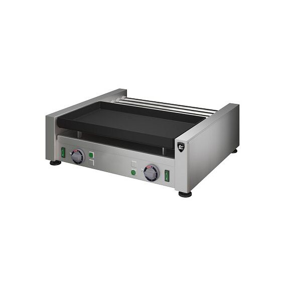 Заказ от 5шт. 536х240х170мм, 0,75 кВт, 220В, ролики из нержавеющей стали 5шт., длина ролика 450мм, кол-во одновременно приготавливаемых сосисок 4-12шт., время приготовления при полной загрузке около 8-14мин, время разогрева роликов до максимальной температуры 10 мин. Скорость вращения роликов 2 об/мин. Под роликами установлен поддон для сбора жира. Масса 7,8кг.