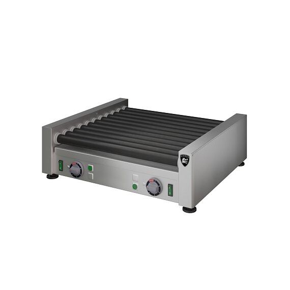 Заказ от 5шт. 536х485х170мм, 1,66 кВт, 220В, ролики из черной стали с антипригарным покрытием 11шт., длина ролика 450мм, кол-во одновременно приготавливаемых сосисок 10-30шт., время приготовления при полной загрузке около 8-14мин, время разогрева роликов до максимальной температуры 10 мин. Скорость вращения роликов 2 об/мин. Под роликами установлен поддон для сбора жира. Масса 15кг.