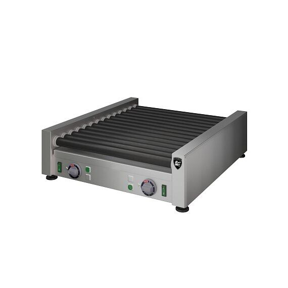Заказ от 5шт. 536х610х170мм, 2,12 кВт, 220В, ролики из черной стали с антипригарным покрытием 14шт., длина ролика 450мм, кол-во одновременно приготавливаемых сосисок 13-39шт., время приготовления при полной загрузке около 8-14мин, время разогрева роликов до максимальной температуры 10 мин. Скорость вращения роликов 2 об/мин. Под роликами установлен поддон для сбора жира. Масса 18,5кг.