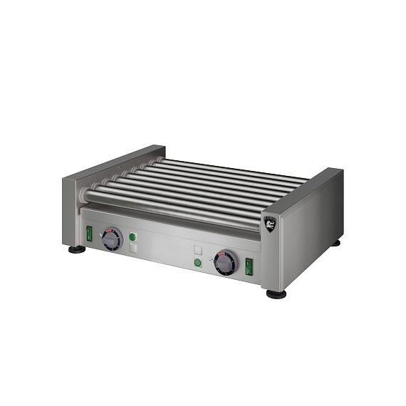 Заказ от 5шт. 536х402х170мм, 1,36 кВт, 220В, ролики из нержавеющей стали 9шт., длина ролика 450мм, кол-во одновременно приготавливаемых сосисок 8-24шт., время приготовления при полной загрузке около 8-14мин, время разогрева роликов до максимальной температуры 10 мин. Скорость вращения роликов 2 об/мин. Под роликами установлен поддон для сбора жира. Масса 13кг.