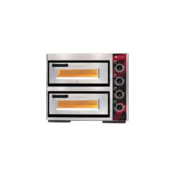 630х606х525 мм, 230В, 3,5+3,5 кВт, 1+1 пицца диам. 40 см, 2 камеры, размер камеры 400х400х100 мм, макс. температура 455С, дверцы с окном, подсветка