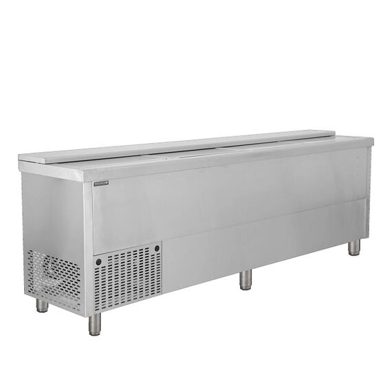2505x565x930 мм, 0,2кВт, 220В, +2...+8С, 118кг, R600A, внутренний размер 2400x470x690 мм, объем 790/565 л. Ларь для напитков в банках и бутылках