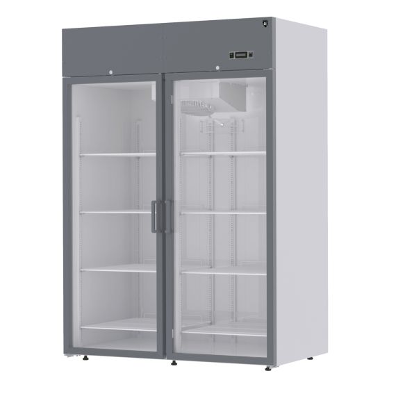 1400х860х2015мм,-5…+5С, 1400л, 2 двери стекло, крашеная сталь, R290, клапан шредера, верхнее расположение агрегата, 230В, 50 Гц, тип охлаждения динамический, оттайка автоматическая при помощи ТЭНов, с системой испарения конденсата. Терморегулятор эл. блок. ПЭН обогрева трубки слива конденсата. Кол-во полок 10, подсветка, замок. Суточный расход электроэнергии 9,5кВ/ч. Потребляемая мощность 0,85раб/0,418отт кВт. Стандарт Gastronorm GN 2/1. Вес 190кг. Толщина стенки корпуса 40мм.