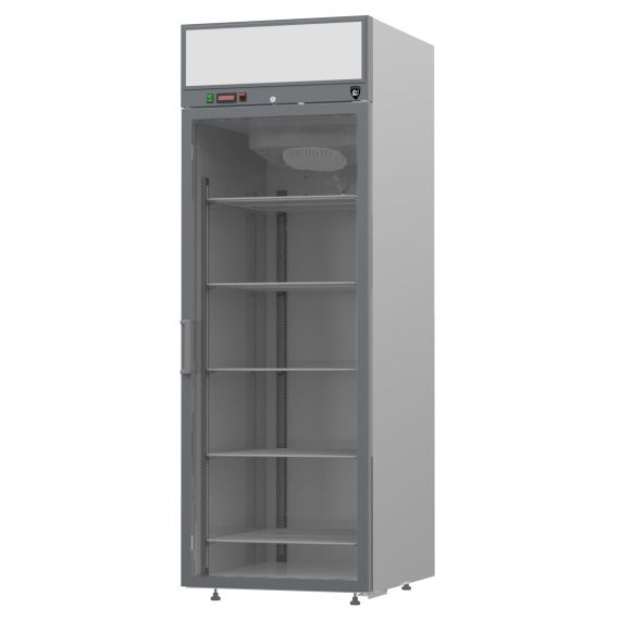 690х860х2015мм,+1…+10С, 700л, 1 дверь стекло, толщина стенки корпуса 40мм, нержавеющая сталь, R290,подсветка на фронтальной панели, клапан шредера, верхнее расположение агрегата, 230В, 50 Гц, тип охлаждения динамический, оттайка автоматическая с системой испарения конденсата. Терморегулятор эл. блок. Кол-во полок 5, подсветка, замок. Суточный расход электроэнергии 4,7кВ/ч. Потребляемая мощность 0,35 кВт. Стандарт Gastronorm GN 2/1. Вес 125кг.
