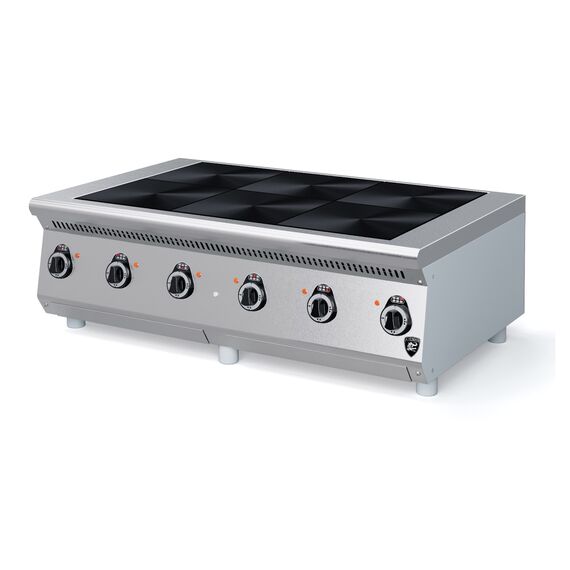 1110x700x370 столешница и лицевая часть - нерж. сталь,- чугунные конфорки 300х300 мм,- все регуляторы расположены на передней панели,- мощность каждой конфорки 2,8 кВт,- разогрев до 400 С за 25 мин,Масса, кг 93 кг.Вес в упаковке 127 кг.Количество конфорок 6Площадь жарочной поверхности, не более м2 0,54м2Размеры в упаковке (ДхГхВ) 1315x900x576 ммТемпература рабочей поверхности конфорок не более 400 С.Кабель для подключения в комплект поставки не входит и приобретается дополнительно.