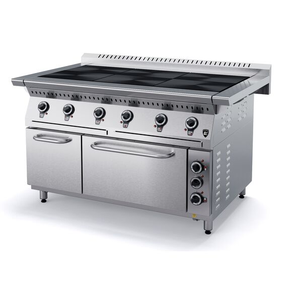 1265х850х860(+30) мм- столешница и лицевая часть - нерж. сталь,- чугунные конфорки 295х417 мм:- все регуляторы расположены на передней панели,- мощность каждой конфорки 3,0 кВт,- разогрев до 480 С за 30 мин,- внутренние размеры жарочного шкафа - 538х535х290 мм,- материал изготовления жарочного шкафа - углеродистая сталь,- в комплекте противни 470х530х30 мм– 3 шт. угл .сталь,- диапазон регулирования температуры жарочного шкафа +20...+270 С,- разогрев жарочного шкафа до +240 С за 30 мин,- аварийный терморегулятор от перегрева +324 С,- раздельная регулировка мощности верхних и нижних ТЭНов,- оснащена комплектом боковых столешниц, нерж,- оснащена инвентарным ящиком для посуды,- регулируемые по высоте ножки.Масса, кг 205 кг.Вес в упаковке 250 кг.Количество конфорок 6Площадь жарочной поверхности, не более м2 0,72 м2Размеры в упаковке (ДхГхВ) 1415х1100х1150 мм.Кабель для подключения в комплект поставки не входит и приобретается дополнительно.