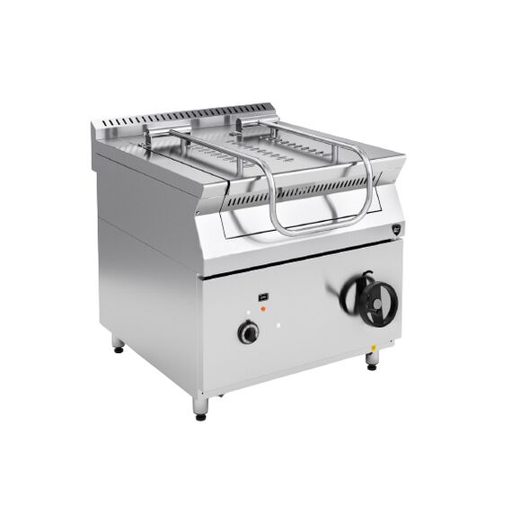 Габарит 840x1045x850(915*)мм, внутренние размеры чаши сковороды 754х622х197мм, вместимость чаши 70л, кол-во тэнов 4шт., номинальная суммарная мощность 12кВт, ток трехфазный переменный, с нейтралью, время разогрева сковороды до рабочей температуры 240С 15мин, диапазон температуры (20...270) 10 С. Корпус и каркас чаши из нержавеющей стали AISI 430, дно чаши-углеродистая сталь.* - возможность регулировки высоты с помощью опор.Кабель для подключения в комплект поставки не входит и приобретается дополнительно.