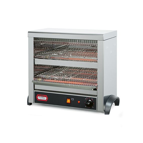 Тостер FIAMMA TOSTI S5 Три уровня нагревательных элементов (по 2 шт на уровень) Габариты: 525x305x445 мм Напряжение 220 В, мощность 2,7 кВт, Вес 10,4 кг