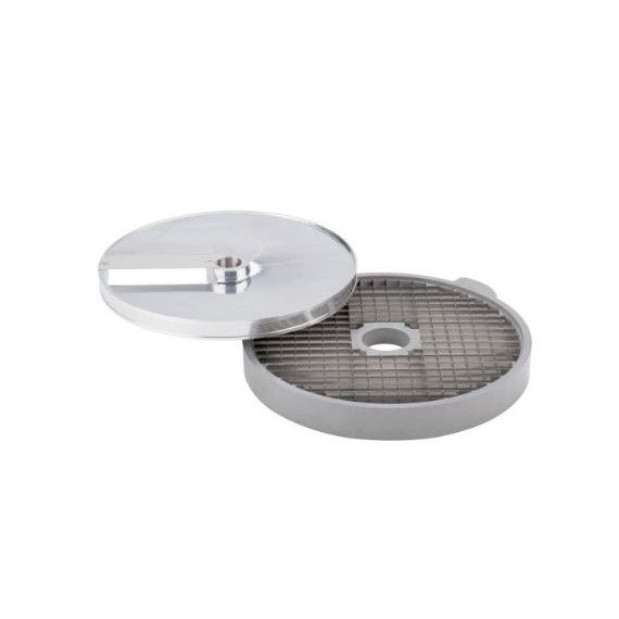 Решетка для нарезки кубиками, производства ROBOT COUPE (Франция) артикул 28112, предназначен для измельчения гастрономических продуктов: колбасных изделий, сыров твердых сортов, копченостей и других пищевых продуктов. Решетка является полезным дополнением к овощерезке, и может поставляться в комплекте с оборудованием или отдельно в качестве дополнительного аксессуара. Данная модель решетки используется в комплекте с диском и дает возможность нарезать продукты на кубики размером 10х10 мм, что позволит быстро и просто приготовить салат, рагу и различные суповые заправки. Решетка изготовлена из пищевой нержавеющей стали, соответствующей всем стандартам и нормам гигиены профессионального оборудования. Она имеет отличную прочность и долговечность, легко снимается и чистится. Решетка предназначена для овощерезок CL50. Решетка ROBOT COUPE 28112 является дополнительным аксессуаром, предназначенным для нарезки гастрономических продуктов в овощерезках, и может применяться в сфере торговли и на предприятиях общественног