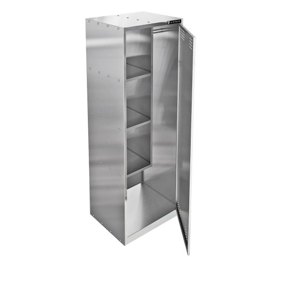 500х400х1750мм.Шкаф для хозинвентаря, каркас: нерж. сталь AISI 430, дверь с замком, 3 полки, 2 из них регулируются по высоте, перекладина, 2 крючка
