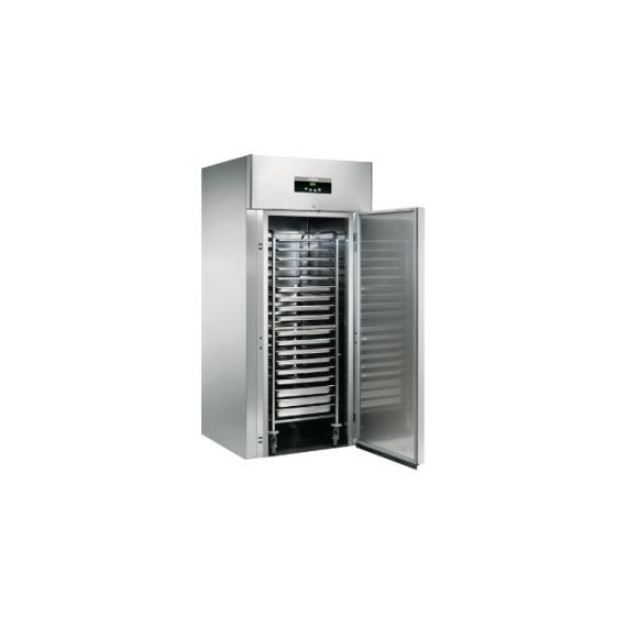 Шкаф холодильный, производства SAGI (Италия) модель CDRI, предназначен для охлаждения и хранения продуктов питания.Вместительная камера данной модели, изготовленная из нержавеющей стали AISI 304 имеет объём - 1520 л. Камера позволяет размещать продукты на 20-ти уровневой вкатываемой тележке с полками формата GN 1/1 530х650 мм. В данном холодильном шкафу используется медно-алюминиевый испаритель ребристого типа. Для удобства использования холодильного шкафа предусмотрена подсветка холодильной камеры. Хладопроизводительность этой модели составляет 429 Вт. Теплоизоляция имеет толщину 75 мм и выполнена из пенополиуретана. Холодильный шкаф позволяет хранить продукты при температурном режиме -2..+10 °C. Для охлаждения и хранения продуктов применяется статический тип охлаждения. Данная модель имеет климатический класс 4+, что обеспечивает возможность эксплуатации холодильного шкафа при температуре окружающей среды до +32 °C. Конденсатор и компрессор имеют воздушную систему охлаждения и размещены над холодильной каме