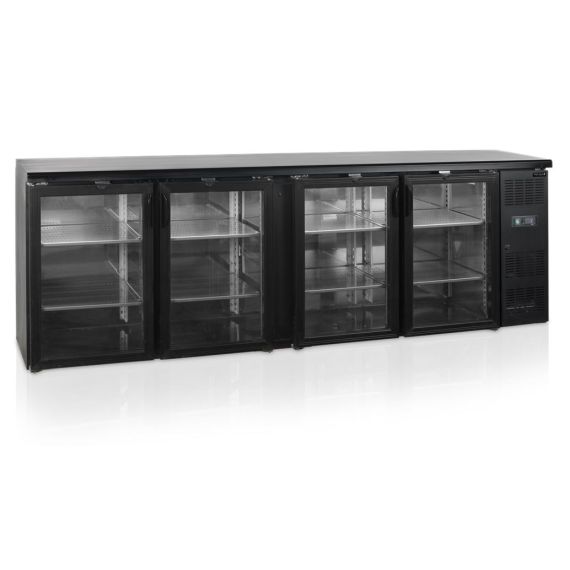 2542x513x860мм, 0,32кВт, 220В, +2...+10С, 138кг, Общий / полезный объем 630 / 605 л R290, 4 стеклянные двери, 8 полок, замок, регулируемые ножки, цвет черный