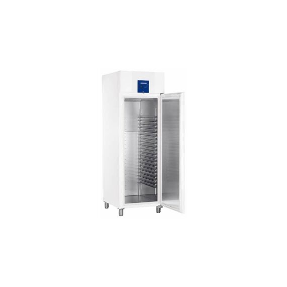 Шкаф морозильный, производства LIEBHERR (Германия) модель BGPv 6520 ProfiLine, предназначен для заморозки и длительного хранения различных продуктов питания.Вместительная камера выполнена из хромоникелевой стали, обладает общим объёмом 607 л. Для уменьшения теплопотерь камера оснащена изоляцией толщиной 83 мм. Внутренние размеры камеры составляют (мм): 510 (ширина), 650 (глубина), 1550 (высота). Камера имеет 20 L-образных опорных шин накопителей из хромоникелевой стали. Морозильная камера легко чистится, её материал имеет антикоррозийные свойства. Данная модель позволяет хранить продукты при температурном режиме -35..-10 °C. Для хранения продуктов применяется вентилируемый тип охлаждения. При заморозке и охлаждении продуктов используется хладагент R290. Размораживание морозильной камеры выполняется в автоматическом режиме. Данная модель шкафа имеет климатический класс T (5).Корпус морозильного шкафа выполнен из качественной стали и окрашен в белый цвет. Данная модель имеет размеры (мм): 700 (ширина), 830 (глу