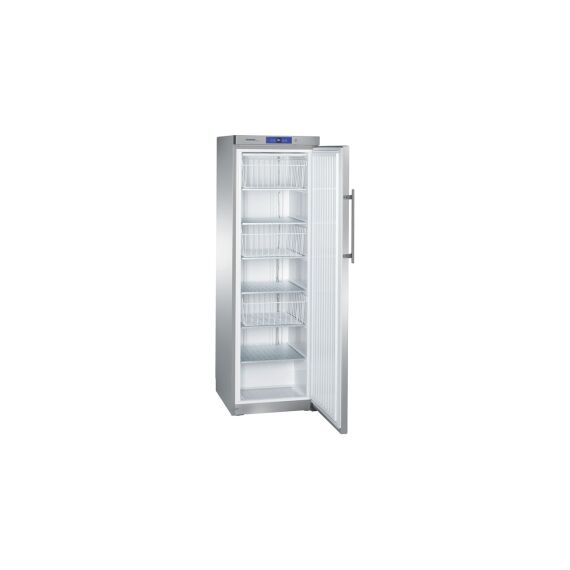 Шкаф морозильный, производства LIEBHERR (Германия) модель GG 4060, предназначен для заморозки и длительного хранения различных продуктов питания.Вместительная камера выполнена из белого пластика, обладает общим объёмом 382 л. Для уменьшения теплопотерь камера оснащена изоляцией толщиной 65 мм. Внутренние размеры камеры составляют (мм): 457 (ширина), 480 (глубина), 1686 (высота) позволяя размещать продукты на 7 полках. Загрузочная емкость морозильного отделения составляет 60 кг. Морозильная камера легко чистится, её материал имеет антикоррозийные свойства. Данная модель позволяет хранить продукты при температурном режиме -28..-14 °C. Для хранения продуктов применяется статический тип охлаждения. Холодильный агрегат размещен под морозильной камерой. При заморозке и охлаждении продуктов используется хладагент R600a. Размораживание морозильной камеры выполняется в ручном режиме. Данная модель шкафа имеет климатический класс SN-ST (4+).Корпус морозильного шкафа выполнен из качественной нержавеющей стали. Данная мо