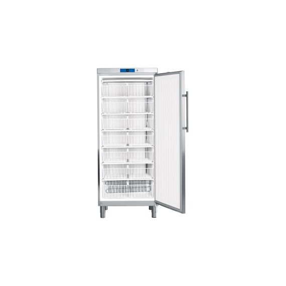 Шкаф морозильный, производства LIEBHERR (Германия) модель GG 5260, предназначен для заморозки и длительного хранения различных продуктов питания.Вместительная камера выполнена из белого пластика, обладает общим объёмом 513 л. Для уменьшения теплопотерь камера оснащена изоляцией толщиной 70 мм. Внутренние размеры камеры составляют (мм): 607 (ширина), 560 (глубина), 1510 (высота) позволяя размещать продукты на 7 полках. Загрузочная емкость морозильного отделения составляет 60 кг. Морозильная камера легко чистится, её материал имеет антикоррозийные свойства. Данная модель позволяет хранить продукты при температурном режиме -28..-14 °C. Для хранения продуктов применяется статический тип охлаждения. Холодильный агрегат размещен под морозильной камерой. При заморозке и охлаждении продуктов используется хладагент R600a. Размораживание морозильной камеры выполняется в ручном режиме. Данная модель шкафа имеет климатический класс SN-ST.Корпус морозильного шкафа выполнен из качественной нержавеющей стали. Данная модель
