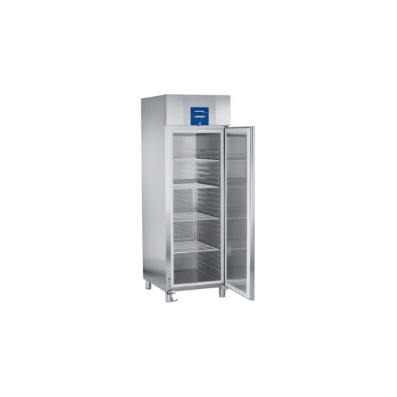 Шкаф морозильный, производства LIEBHERR (Германия) модель GGPv 6580 ProfiPremiumline, предназначен для заморозки и длительного хранения различных продуктов питания.Вместительная камера выполнена из хромоникелевой стали, обладает общим объёмом 601 л. Для уменьшения теплопотерь камера оснащена изоляцией толщиной 83 мм. Внутренние размеры камеры составляют (мм): 510 (ширина), 650 (глубина), 1550 (высота) позволяя размещать продукты на 4 полках-решетках с пластмассовым покрытием. Загрузочная емкость морозильного отделения составляет 60 кг. Морозильная камера легко чистится, её материал имеет антикоррозийные свойства. Данная модель позволяет хранить продукты при температурном режиме -35..-10 °C. Для хранения продуктов применяется вентилируемый тип охлаждения. При заморозке и охлаждении продуктов используется хладагент R290. Размораживание морозильной камеры выполняется в автоматическом режиме. Данная модель шкафа имеет климатический класс T.Корпус морозильного шкафа выполнен из качественной хромоникелевой стали. Д