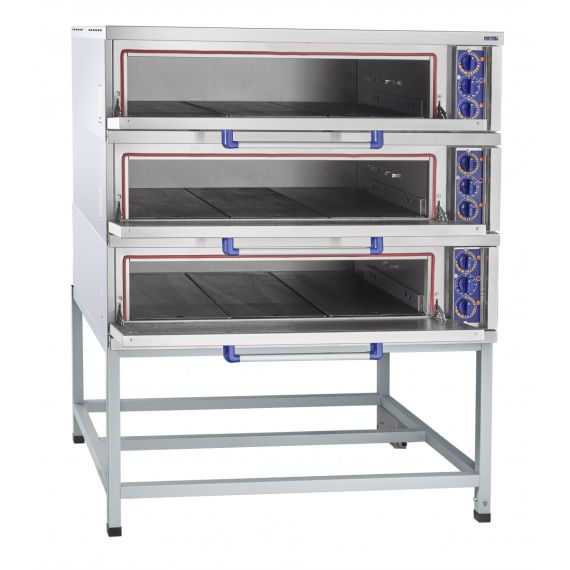 1300x1080x1355мм, Шкаф пекарский подовый ЭШ-3К электрический, 3 пекарные камеры 1000х800х180 мм, нерж. ТЭН-ы, раздельная регулировка верхних и нижних ТЭН-ов (+20...+270 С), нерж. облицовка, нерж. дверцы, краш. боковые и задняя стенки, поды - углеродистая сталь, 1300x1080x1660 мм, 15,6 кВт, 400 В, краш. подставка, разборная конструкция