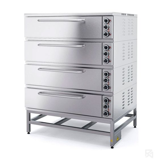 Корпус выполнен из нержавеющей стали, внутренняя часть жарочного шкафа - из углеродистой стали, подставка, боковые и задние стенки - из окрашенного металла. В комплект поставки входят противни из углеродистой стали.
