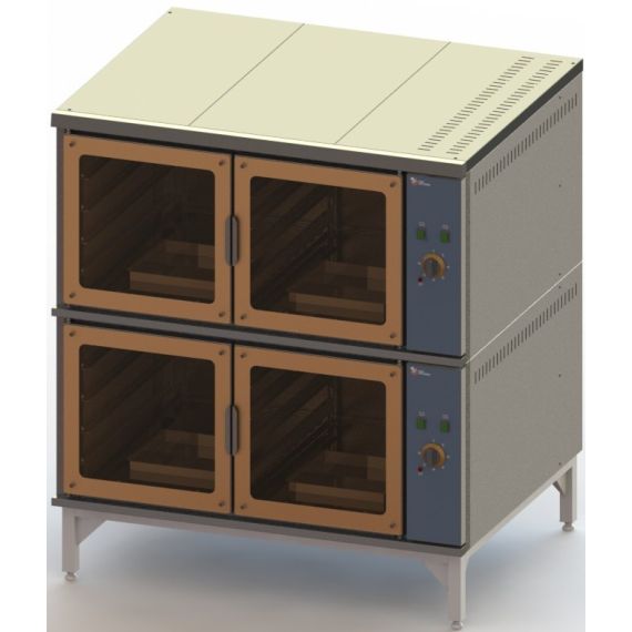 ШКАФ РАССТОЕЧНЫЙ ЭЛЕКТРИЧЕСКИЙ, модель - ШРЭ-2, двухсекционный, имеет модульную конструкцию в виде подставки, секции и крышки (поставляется в собраном виде). Шкаф предназначен для расстойки хлебобулочных и кондитерских изделий. Регулятор температуры 0-90°С. Мощность - 4,160 КВт. Подставка выполнена из профильной трубы 40х40 и окрашена порошковой краской серого цвета. Лицевая панель выполнена из нерж стали марки AISI 430 толщиной 1,2 мм. Задняя и боковые панели, а так же крышка выполнены из конструкц. стали толщиной 1 мм окрашенной порошковой краской серого цвета. В комплекте на одну секцию 2 поддона для воды вместимостью 3 литра. Подсветка секции. Габаритные размерф:1300х1020х1480, мм.