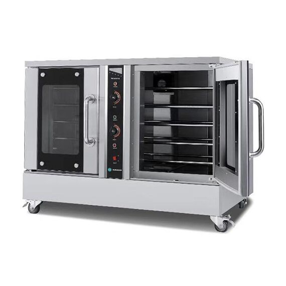 1220х815х940мм, 46кг, 220В, 2,8кВт, 10 (2*5) уровней, температурный режим 30-85C, камера 720х1190х650мм, подключение к воде, противни 600х400мм
